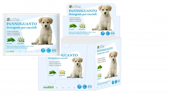 Il Pannoguanto Detergente per Cuccioli della linea Affex è un pratico panno-guanto monouso formulato per la pulizia e l’igiene del Cucciolo: grazie alla particolare emulsione delicata con Camomilla e Tè Verde, priva di alcool, lascia una piacevole profumazione che non disturba l’animale. E’ imbevuto di detergente delicato non schiumoso che non richiede risciacquo. Munito di un particolare rivestimento interno, protegge la mano di chi lo indossa lasciandola asciutta. Ideale per la pulizia del pelo, anche se umido, è in grado di sostituirsi completamente a un lavaggio ad acqua completo. Usato regolarmente mantiene pulito, profumato e protetto il manto dell’animale donandogli lucentezza senza modificarne il pH.