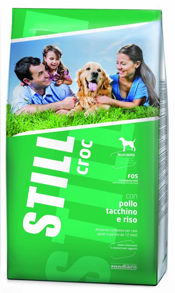 Still Croc STILL CROC è un alimento completo ideale per tutti i cani che svolgono una normale attività fisica. Le materie prime di grande qualità, quali Pollo, Tacchino e Riso, consentono di apportare proteine a elevata biodisponibilità e carboidrati per un alimento estremamente leggero e appetibile. La completa integrazione vitaminico-minerale favorisce il rafforzamento delle difese immunitarie del cane.
