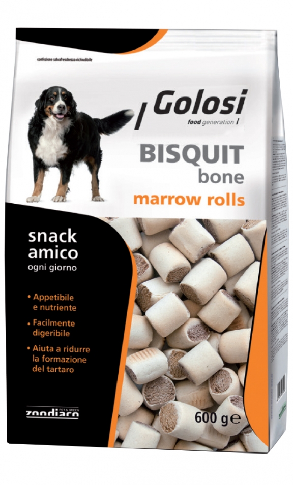 Bisquit BONE Marrow Rolls è un biscotto leggero e appetitoso, ideale come snack o premio per il tuo amico a quattro zampe. Le materie prime di qualità lo rendono inoltre leggero e facilmente digeribile. L'innovativa confezione salvafreschezza richiudibile consente di mantenere il biscotto fresco e croccante così da conservare inalterate le sue proprietà per la gioia e il benessere del tuo cane ogni giorno.