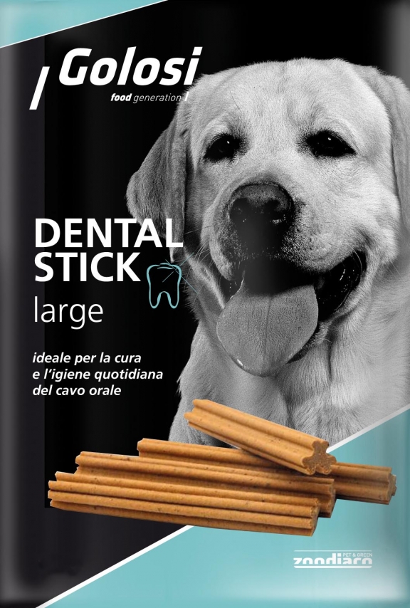 DENTAL STICK LARGE è ideale per la cura e l'igiene quotidiana del cavo orale del cane di taglia grande, grazie all'azione meccanica della masticazione che favorisce la rimozione della placca dentaria. Il delicato gusto del pollo lo rende appetitoso per ogni palato mentre l'integrazione di zeolite e calcio, minerali con azione abrasiva, promuove una corrette igiene orale.