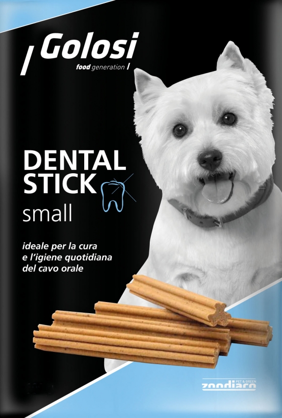 DENTAL STICK SMALL è ideale per la cura e l'igiene quotidiana del cavo orale del cane di piccola taglia, grazie all'azione meccanica della masticazione che favorisce la rimozione della placca dentaria. Il delicato gusto del pollo lo rende appetitoso per ogni palato mentre l'integrazione di zeolite e calcio, minerali con azione abrasiva, promuove una corrette igiene orale.