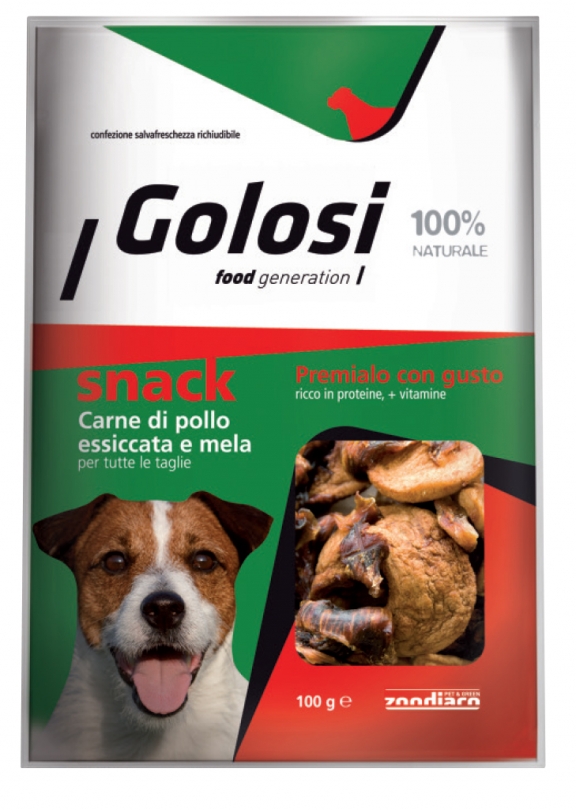 Golosi Food Generation Snack è un alimento complementare che può essere dato in qualsiasi momento della giornata come premio o snack. È formulato per il divertimento e il benessere del vostro cane. Si consiglia di somministrare al Vostro cane almeno uno snack al giorno contribuendo così a mantenere il Vostro cane sano e sempre in forma. Conservare in luogo fresco e asciutto. Lasciare sempre a disposizione acqua fresca e pulita. Rimuovere la confezione di deoxider prima di utilizzare.