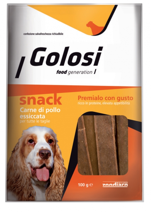 Golosi Food Generation Snack è un alimento complementare che può essere dato in qualsiasi momento della giornata come premio o snack. È formulato per il divertimento e il benessere del vostro cane. Si consiglia di somministrare al Vostro cane almeno uno snack al giorno contribuendo così a mantenere il Vostro cane sano e sempre in forma. Conservare in luogo fresco e asciutto. Lasciare sempre a disposizione acqua fresca e pulita. Rimuovere la confezione di deoxider prima di utilizzare.