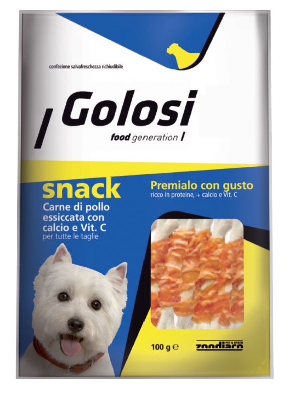 Golosi Food Generation Snack è un alimento complementare che può essere dato in qualsiasi momento della giornata come premio o snack. È formulato per il divertimento e il benessere del vostro cane. Si consiglia di somministrare al Vostro cane almeno uno snack al giorno contribuendo così a mantenere il Vostro cane sano e sempre in forma. Conservare in luogo fresco e asciutto. Lasciare sempre a disposizione acqua fresca e pulita. Rimuovere la confezione di deoxider prima di utilizzare.