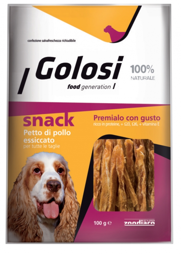 Golosi Food Generation Snack è un alimento complementare che può essere dato in qualsiasi momento della giornata come premio o snack. È formulato per il divertimento e il benessere del vostro cane. Si consiglia di somministrare al Vostro cane almeno uno snack al giorno contribuendo così a mantenere il Vostro cane sano e sempre in forma. Conservare in luogo fresco e asciutto. Lasciare sempre a disposizione acqua fresca e pulita. Rimuovere la confezione di deoxider prima di utilizzare.