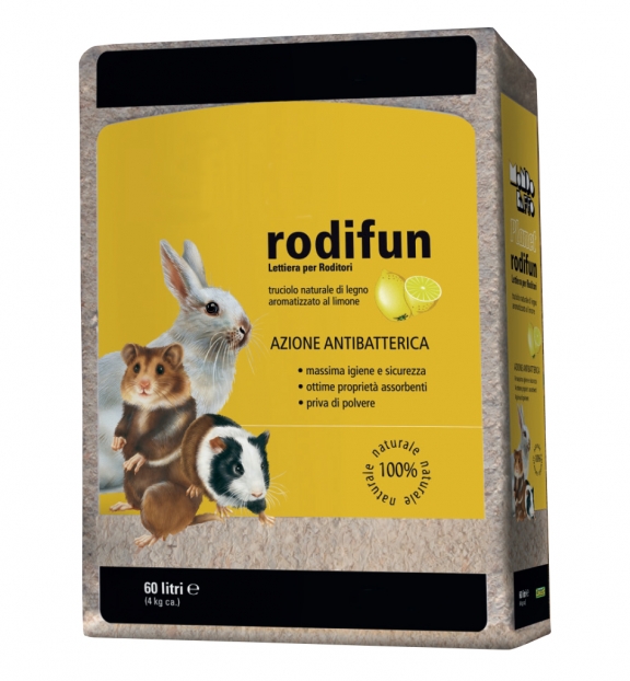 Prodotto naturale in truciolo di legno aromatizzato al limone. Ideale per conigli, criceti, cavie, topolini ballerini, scoiattoli.