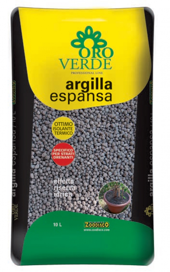 Argilla Espansa Oro Verde è costituita da palline ottenute attraverso un processo di cottura ad alte temperature che le rende chimicamente neutre, sterilizzate e prive di microganismi dannosi per la salute delle piante. Grazie alla loro struttura e colore, le palline di argilla sono gradevoli alla vista ed ideali per la decorazione delle piante da interno e da esterno in vasi, fioriere, bordure ed aiuole. La loro azione pacciamante controlla l’insorgenza di erbe infestanti, riducendo l’evaporazione dell’acqua del suolo inoltre è un ottimo isolante termico, resistente alla compressione e caratterizzato da basso peso specifico. Per tali caratteristiche, si presta ottimamente come materiale per la costruzione di strati drenanti.