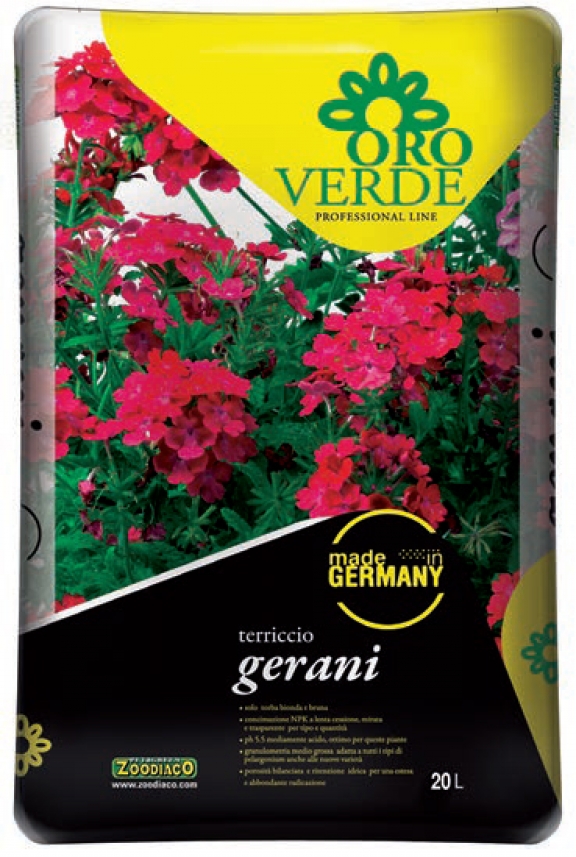 La torba Oro Verde Gerani è un prodotto naturale che risulta ideale per la coltivazione in vaso o cassetta di gerani (in generale tutti i pelargonium), surfinie, petunie e piante fiorite in genere.