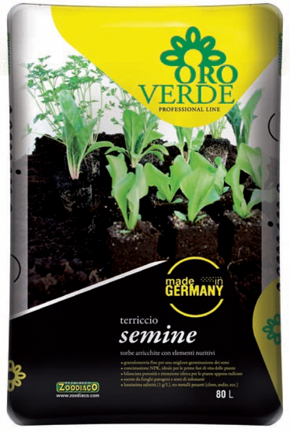 Oro Verde Semine è una torba da semenzaio composta esclusivamente da torbe bionde, brune e scure. Il prodotto ha una struttura fine che risulta ideale per semine in alveoli medi, in vasetti o cubetti o in cassetta. La porosità e la granulometria appositamente studiate per l’impiego in semenzaio, oltre alla grande quantità di sostanza organica, favoriscono una rapida germinazione e una abbondante radicazione. La bassa salinità evita bruciature radicali e la giusta concimazione alimenta l’armonica crescita alle giovani plantule. Oro Verde Semine può essere usata anche in miscela con varie sementi per aumentarne il volume e migliorarne la distribuzione sul terreno, oltre che a favorirne la loro germinazione. Sempre per la sua struttura fine risulta adatta anche come coprente dopo la semina dei tappeti erbosi migliorandone la germinazione e la radicazione. Inoltre, contemporaneamente, il terreno alleggerisce ed avrà una maggiore sofficità e porosità. L’origine dei componenti, solo torbe, è a garanzia di naturalità, purezza ed assenza di metalli pesanti, semi di infestanti e altri inquinanti.