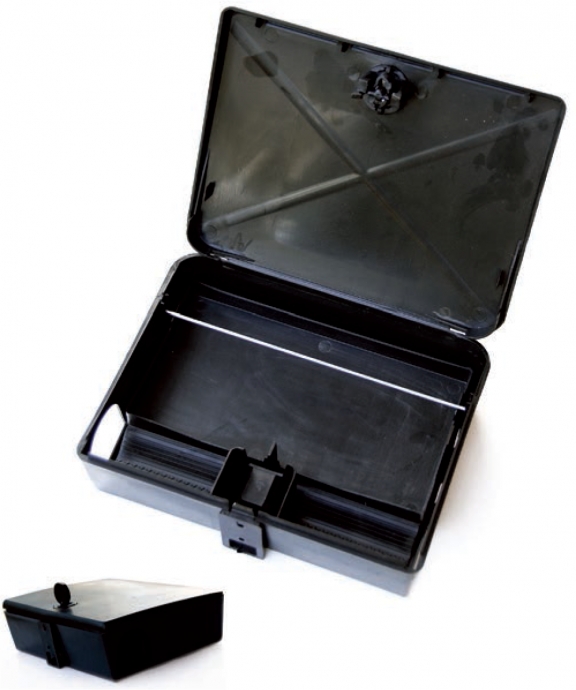 Rat Station Piper è un distributore di esche multifunzionale che, grazie alle sue peculiari caratteristiche, permette di ottenere ottimi risultati sia per il controllo degli insetti striscianti che della popolazione murina. Rat Station Piper, infatti, presenta un alloggiamento inferiore atto a contenere la trappola ecologica per blatte (vedere trappola scarafaggi a pag.100), le cui dimensioni possono essere adattate perfettamente grazie alle bande laterali a strappo. Il piano superiore presenta una sezione indicata per il monitoraggio e la cattura dei roditori dove può trovare alloggiamento il cartoncino collante (vedere colla per topi in cartoncino pag. 86) e una sezione per il contenimento di esche ratticide di ogni genere ma sopratutto le esche paraffinate (vedere topi e ratti paraffinato pag. 85) che, trovano posizionamento specifico, grazie al ferretto contenuto nel Rat Station Piper. Le caratteristiche peculiari del distributore, come la dotazione di chiave per la chiusura e la presenza di una staffa per l’ attacco ai muri, lo rendono assolutamente sicuro.