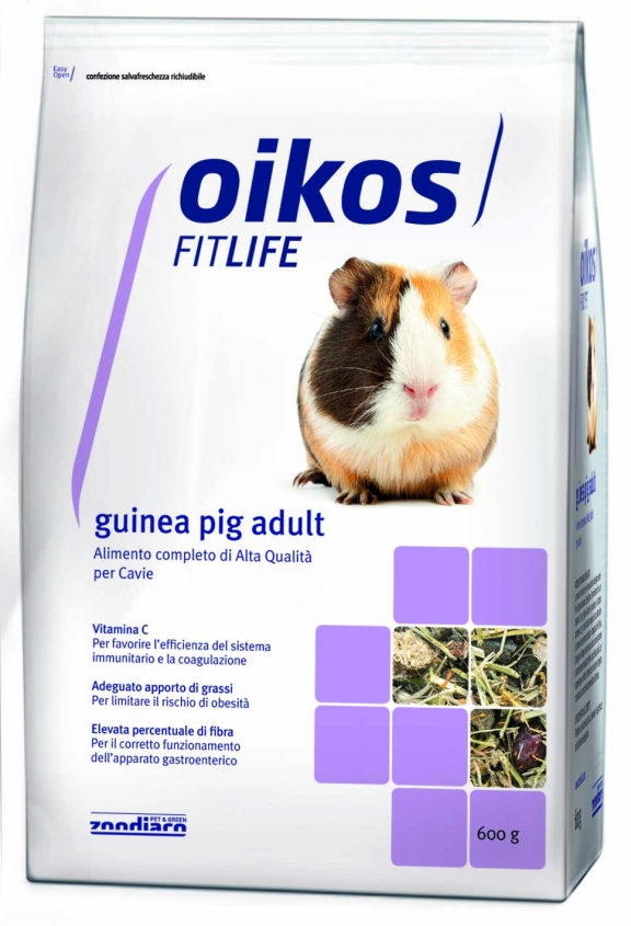 Oikos Fitlife Guinea Pig Adult è un alimento completo specifico per l’alimentazione della cavia. L’adeguato apporto di grassi associato all’elevata percentuale di fibra aiuta a limitare l’apporto energetico, per ridurre il rischio di sovrappeso e obesità. L’apporto di vitamina C, non sintetizzabile dalla cavia, è indispensabile per l’efficienza del sistema immunitario, favorisce inoltre la coagulazione e la guarigione delle ferite.
