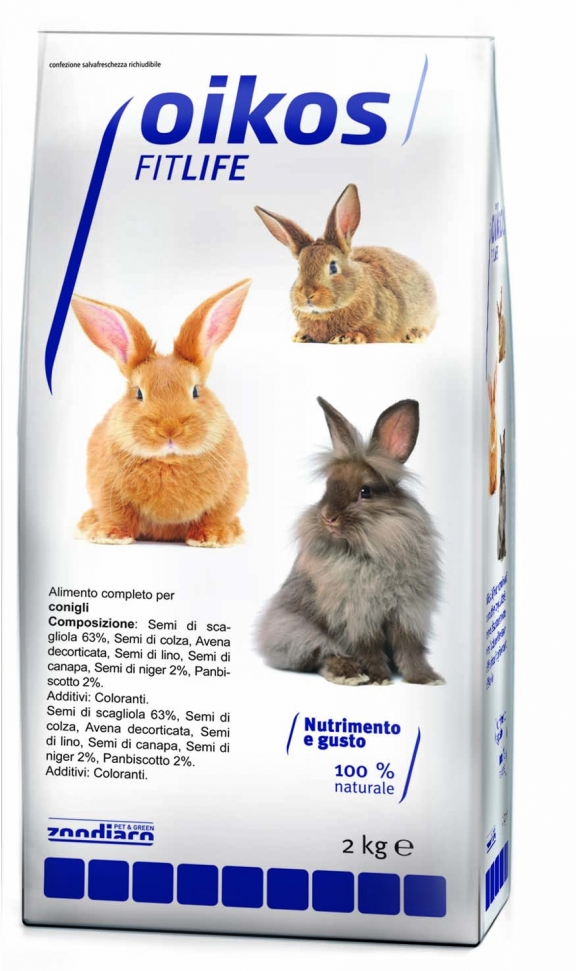Oikos Fitlife Mix Conigli è un alimento completo ideale per l’alimentazione quotidiana dei conigli nani. La frutta e gli ortaggi lo rendono particolarmente appetibile senza appesantire, per mantenere una condizione di benessere.