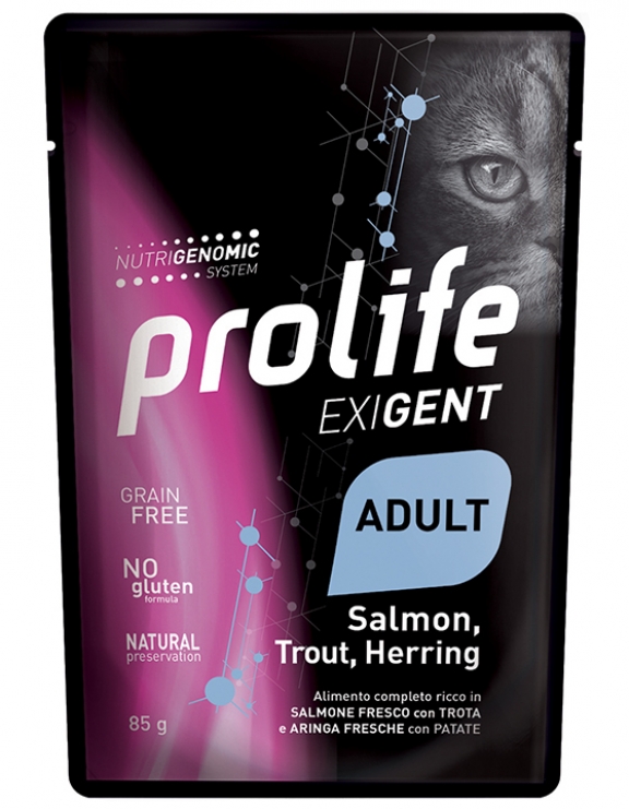 Salmone fresco 58%, Trota fresca 5%, Aringa fresca 5%, Patate 4%, Alltech® Nutrigenomic System 1,2%, Cellulosa 1%, Sostanze minerali, Olio di salmone 0,2%, Fruttoligosaccaridi (FOS) 0,1%.