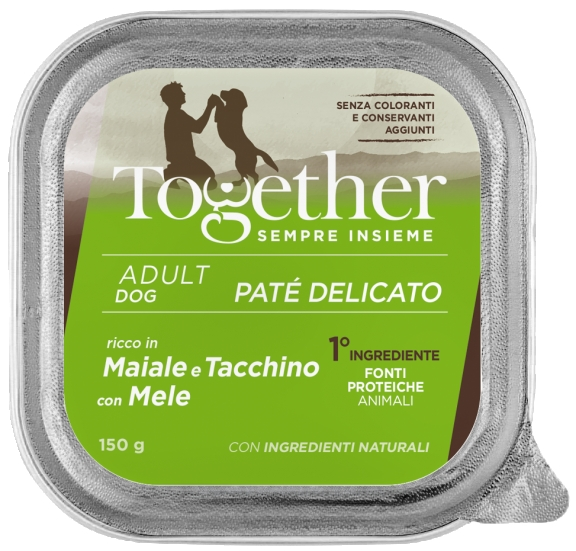 Composizione: Maiale* 29%, Tacchino* 26%, Mele* 4%, Pollo*, Minerali, Inulina da cicoria 0,4%.