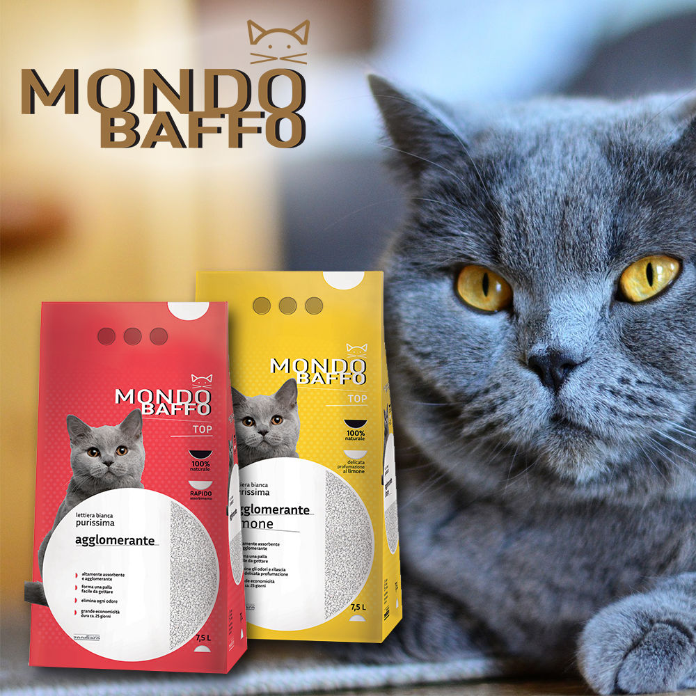 Due novità per la linea Mondo Baffo top: Lettiera bianca Purissima agglomerante, composta al 100% da bentonite bianca altamente assorbente e agglomerante. La dimensione del granulato permette una rapida agglomerazione e la formazione di una palla facile da raccogliere e da smaltire, garantendo massima igiene e risparmio di prodotto: 100% naturale, inodore, grazie alle sue caratteristiche permette un rapido assorbimento dei liquidi e degli odori.