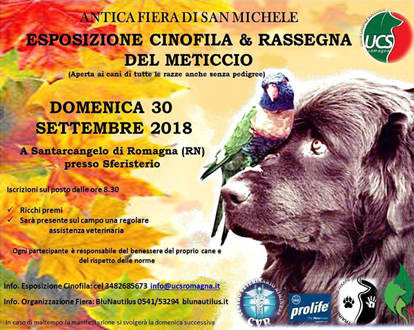 Prolife sponsor all'esposizione Cinofila & Rassegna del Meticcio domenica 30 settembre 2018 a Santarcangelo di ROmagna (Rn).