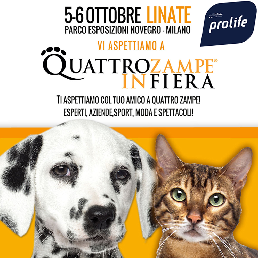 Anche quest'anno Prolife vi aspetta a Quattrozampeinfiera Milano per una 2 giorni dove i protagonisti saranno i nostri amici a 4 zampe!