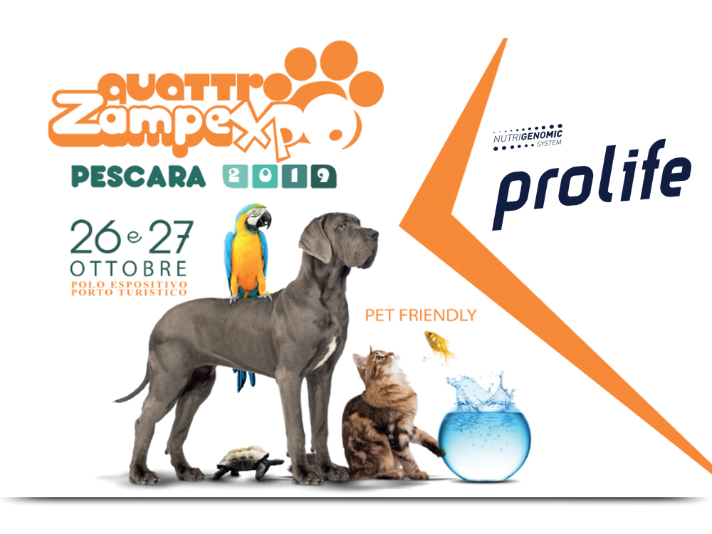 Vieni a trovare Prolife al Quattrozampexpo 2019 di Pescara il 26 e 27 ottobre nella fantastica location del Padiglione Espositivo marina di Pescara.